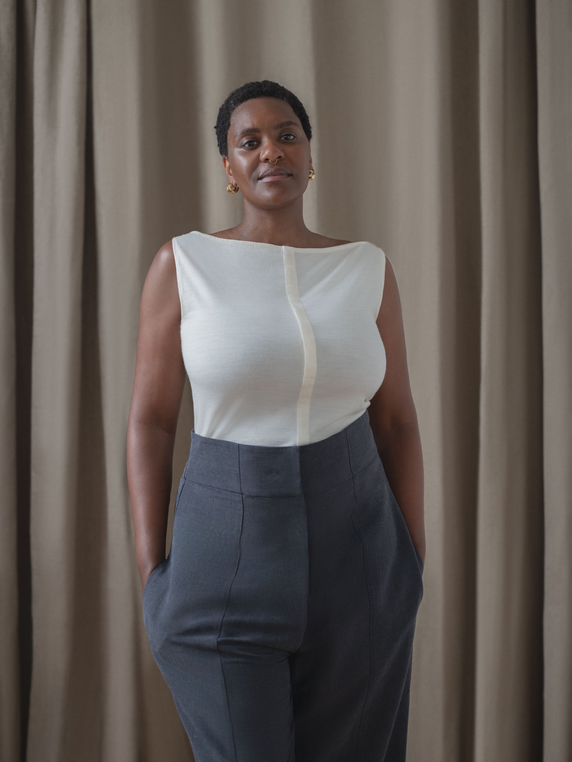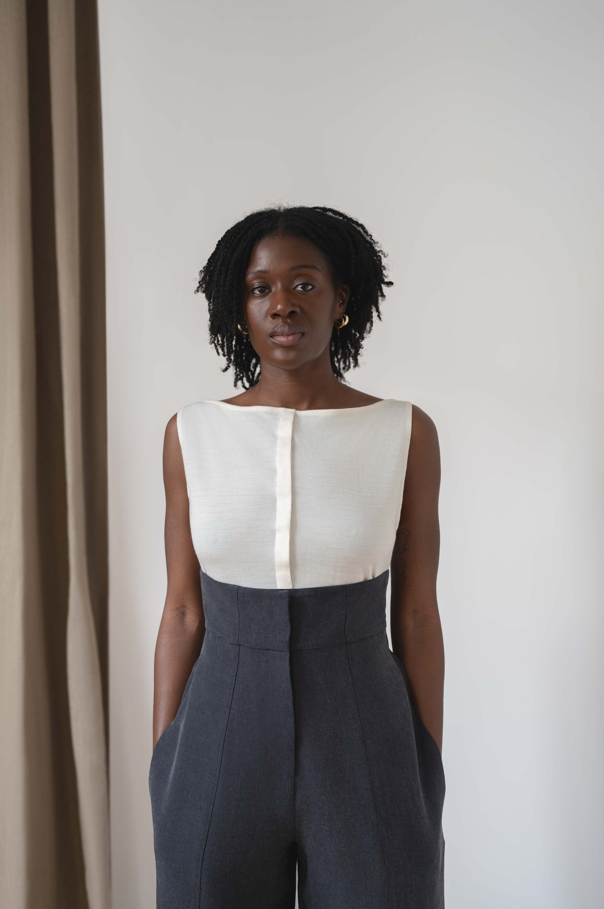 round relaxed trousers - black silk